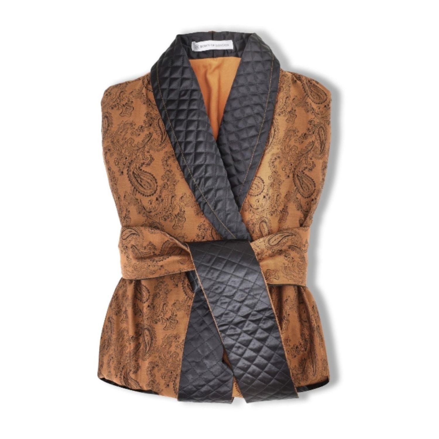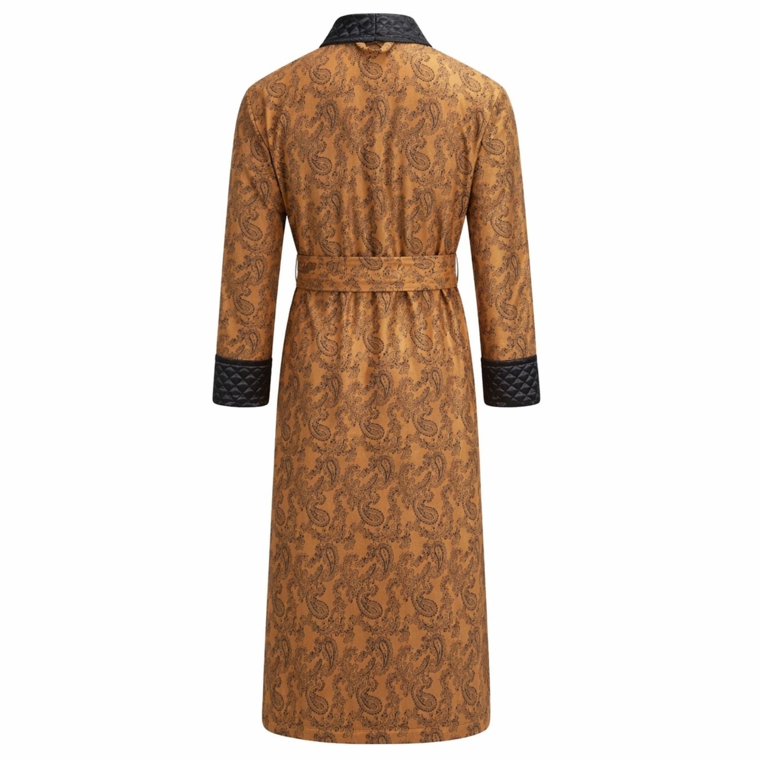 The Majestic Long Gold Smoking Jacket is where timeless style meets everyday comfort. Tailored for a flawless fit, this luxurious smoking robe features a gold hue accented with quilted black satin collar—perfect for the modern gentleman who appreciates classic sophistication.